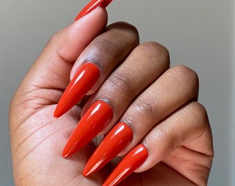 A mani like this can be great for festivals too. It is a bright and gorgeous nail idea that will suit everyone. Add some rhinestones for a shiny finish. Orange matte pointed falsies fake nails / 24 nails. Whether you're after neon nails, bright colors, coffin nails, long and short, there's plenty of different nail art to choose from in this post.