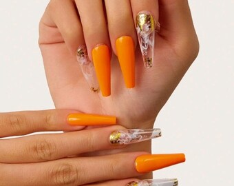 Acrylic Orange Nails Coffin, Coffin Long Orange Acrylic Nails Top Art Nails, I've gone ahead and chosen the most striking nail designs for acrylic nails and natural nails from the top nail posts on pinterest.. One of my fave blues 💦👽🚀💙🍭 intergalactic sprinkles from @glitterdaze #instanails #nails #nailgame #notd #nailstagram #nailswag #. 4.5 out of 5 stars. Matte nails gel nails acrylic nails nail nail acrylics new nail designs acrylic nail designs orange nails blue nails. Butterfly coffin acrylic press on nails/ purple nails/ pink nails/ black nails/ cute cheap acrylic nails. Bright orange nails orange acrylic nails simple acrylic nails fall acrylic nails orange ombre nails orange nail designs fall nail designs cute nail designs orange design.