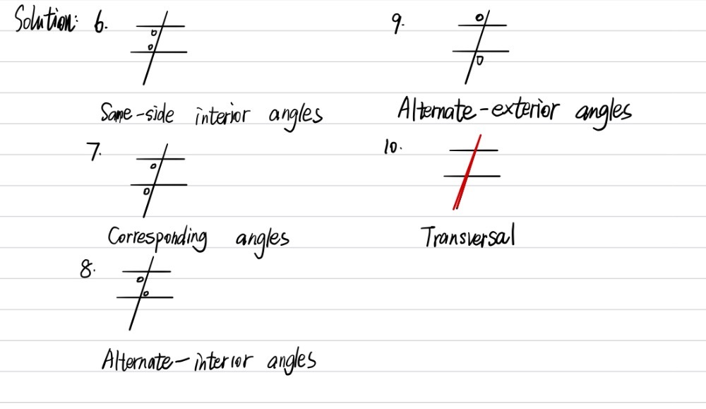 If all three sides of one triangle are congruent to three corresponding sides of another triangle, the triangles are congruent. Here is an example showing how to use this information. When you have two lines and a third line crossing through them, the pairs of angles that are outside both lines and on alternating sides of the third line are your alternate exterior angles. An exterior angle measure is equal to the sum of the two interior angles not adjacent to it. The 2 interior angles that are not adjacent and are on the same side of the transversal are supplementary. Converse of parallel lines theorem if two lines are intersected by a transversal, then alternate interior angles, alternate exterior angles, and corresponding angles are congruent. When two lines are crossed by another line (called the transversal ): Which diagram shows lines that must be parallel lines cut by a transversal? Angles in similar position on the same side of the transversal and are congruent. When two parallel lines are intersected by a transversal line they formed 4 interior angles. → corresponding angles as that would be 2 and 6 → same side interior angles as that would be 3 and 6 or 4 and 5 → alternate interior angles as that would be 6 and 4 of 3 and 5. The alternate exterior angles theorem states that, when two parallel lines are cut by a transversal , the resulting alternate exterior angles are congruent. Alternate exterior angles are congruent angles outside the parallel lines on opposite sides of the transversal.